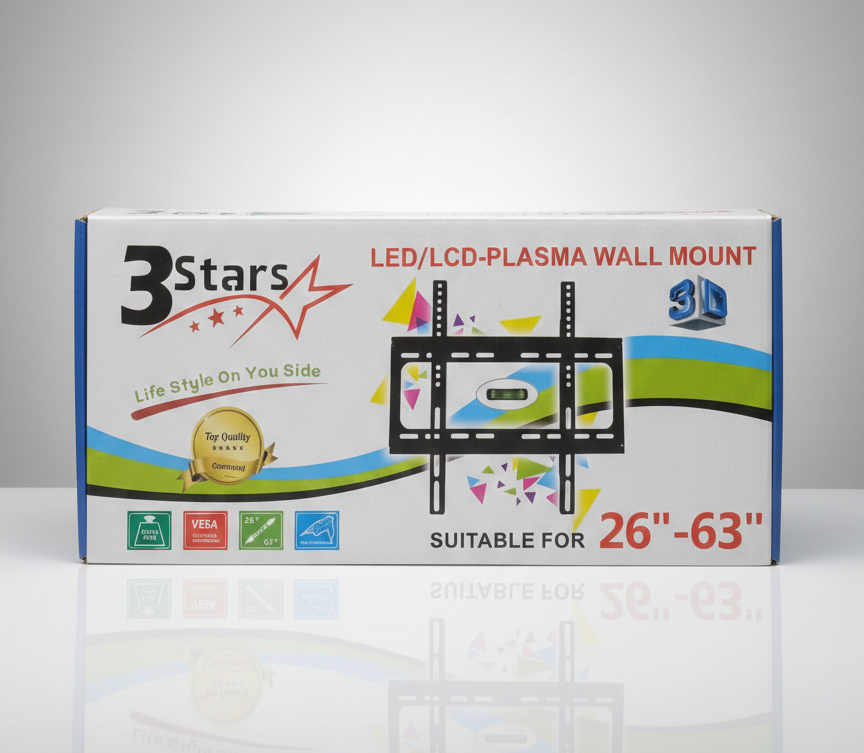 هل تمتلك شاشة بحجم كبير وتريد أعلى درجات الأمان؟ إليك الحامل الثابت من 3Stars المصمم خصيصاً ليتحمل الأحجام الكبيرة بذكاء وقوة، مع الحفاظ على مظهر ديكور عصري وأنيق.