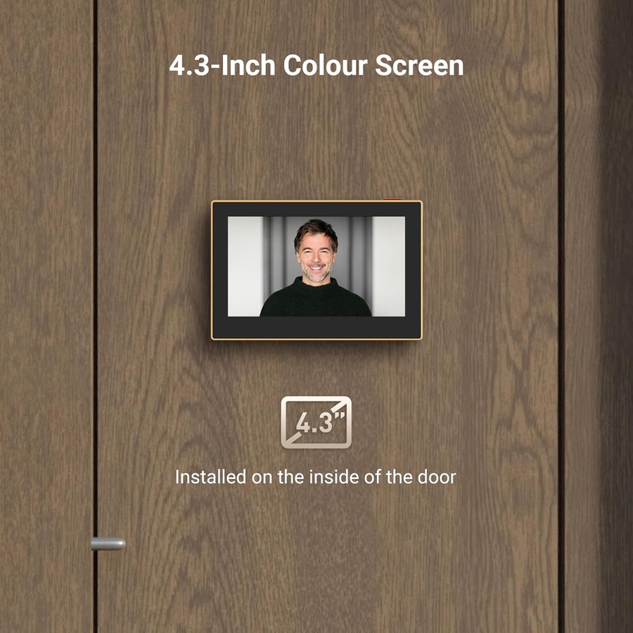 - 4.3-inch Vivid Color Screen | شاشة ملونة داخلية: استبدل النظر من "ثقب الباب" الصغير بشاشة ملونة كبيرة وواضحة، مثالية للأطفال وكبار السن لرؤية من بالخارج دون عناء.