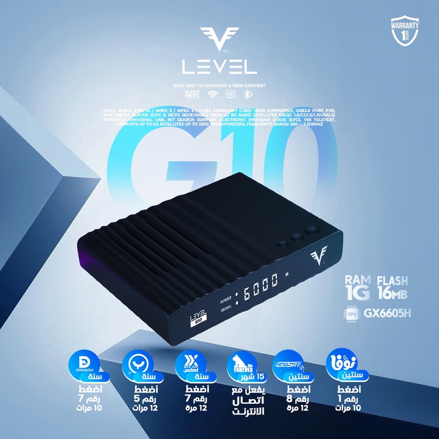 إذا كنت تبحث عن القوة الحقيقية، السرعة في التشغيل، وأحدث تقنيات المعالجة، فإن Level G10 هو العملاق الجديد الذي يمنحك جودة Full HD 1080p مع استقرار لا مثيل له. جهاز يجمع بين الفخامة في التصميم المستورد والاحترافية في الأداء.