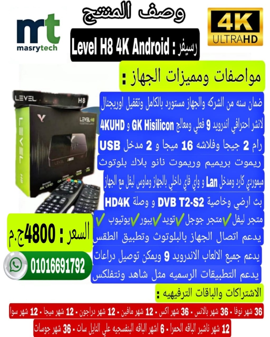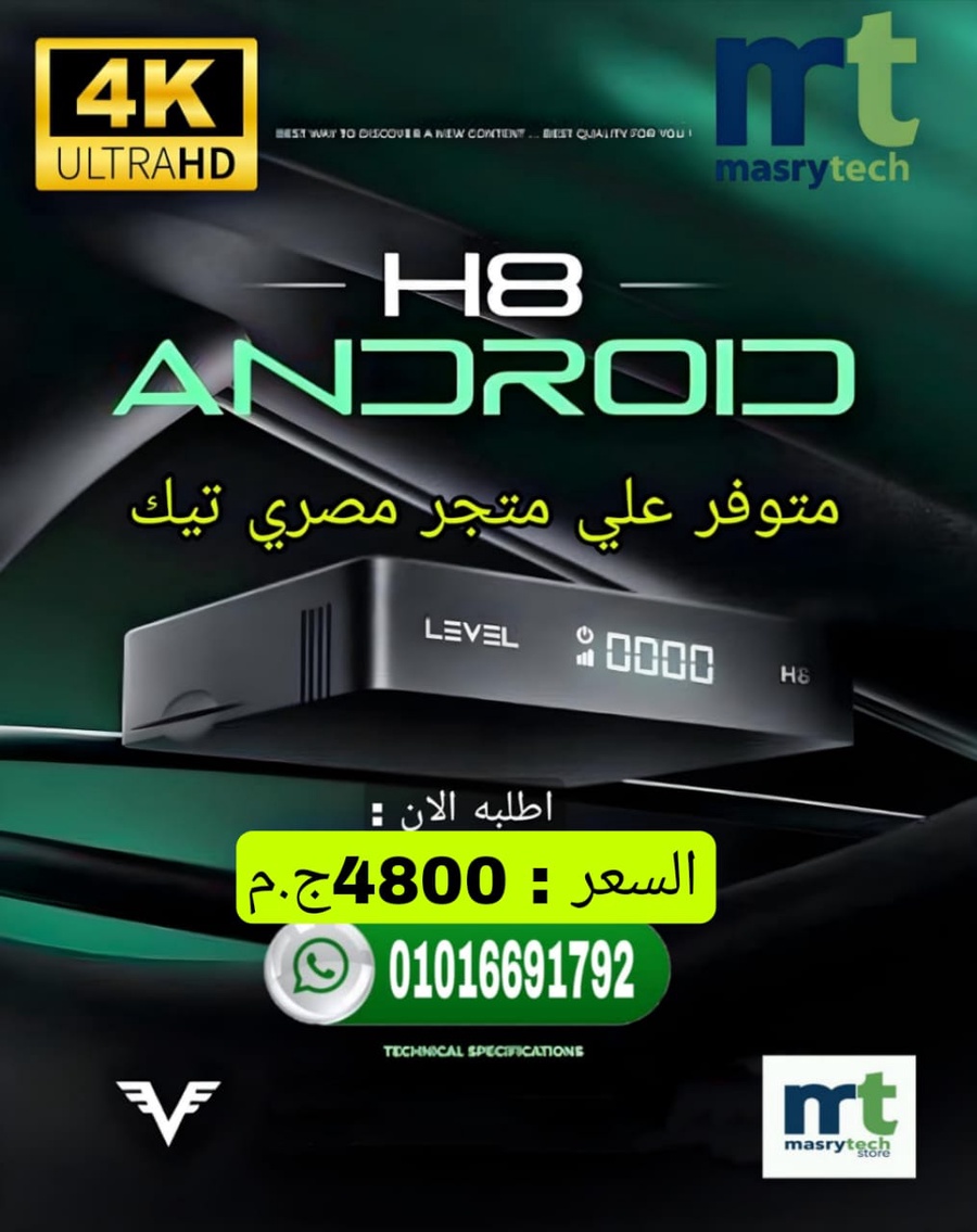 إذا كنت تبحث عن القمة، فإن Level H8 هو الاختيار النهائي. ليس مجرد رسيفر، بل هو مركز ترفيه متكامل يجمع بين دقة الـ 4K الحقيقية ونظام الأندرويد الاحترافي، ليحول شاشتك إلى منصة ذكية فائقة السرعة.