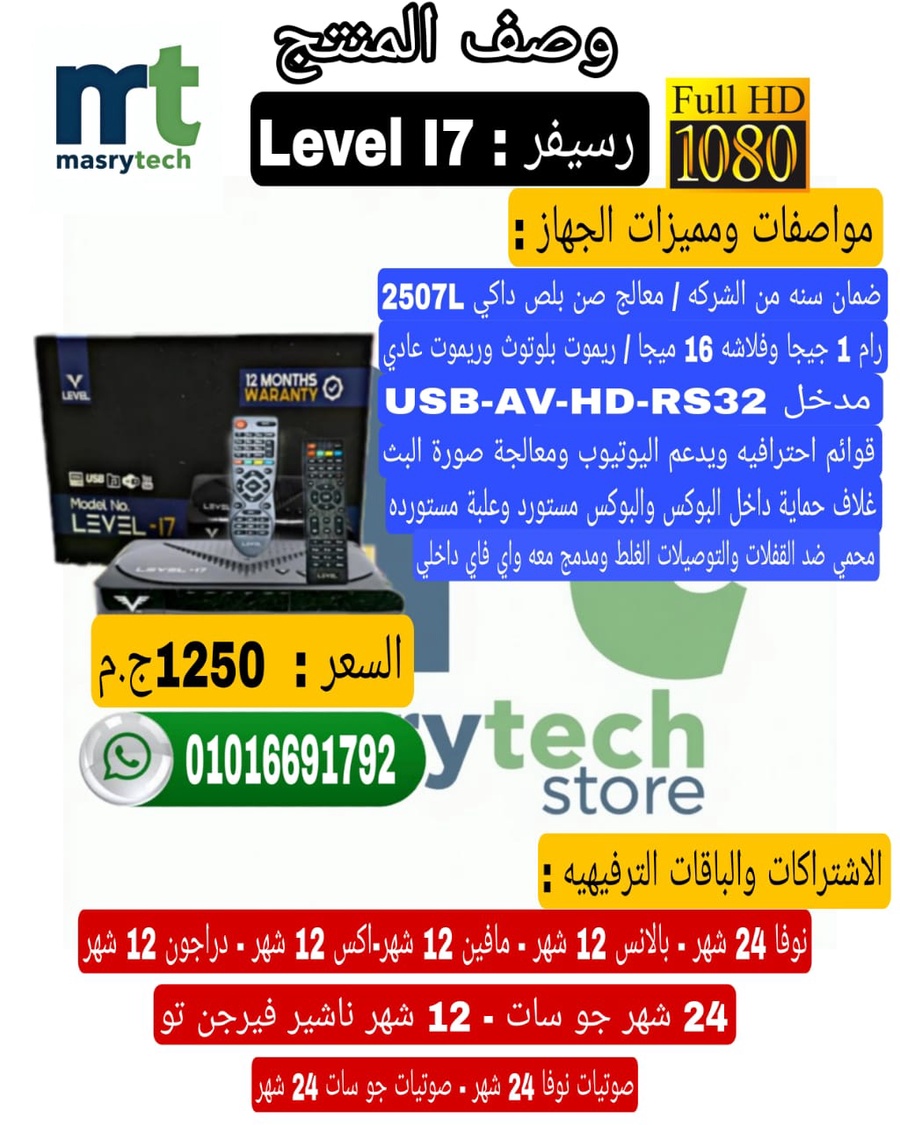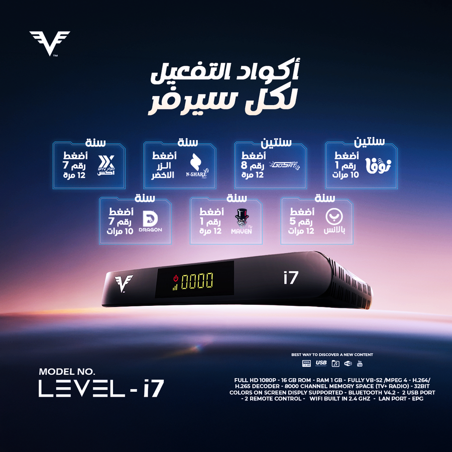 اقتحم عالم الترفيه مع جهاز Level I7، الرسيفر الذي يجمع بين التصميم الفاخر والمواصفات المتطورة، مصمم خصيصاً لمن يبحث عن الجودة والاستمرارية مع أضخم مكتبة محتوى في مصر.