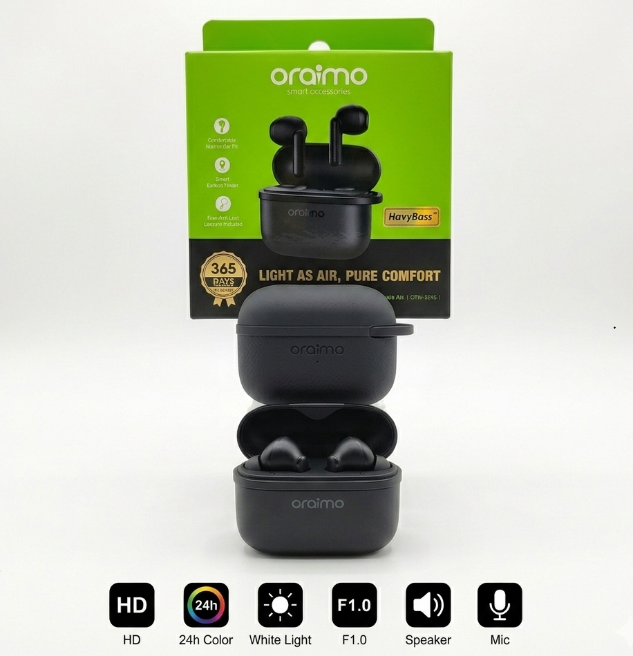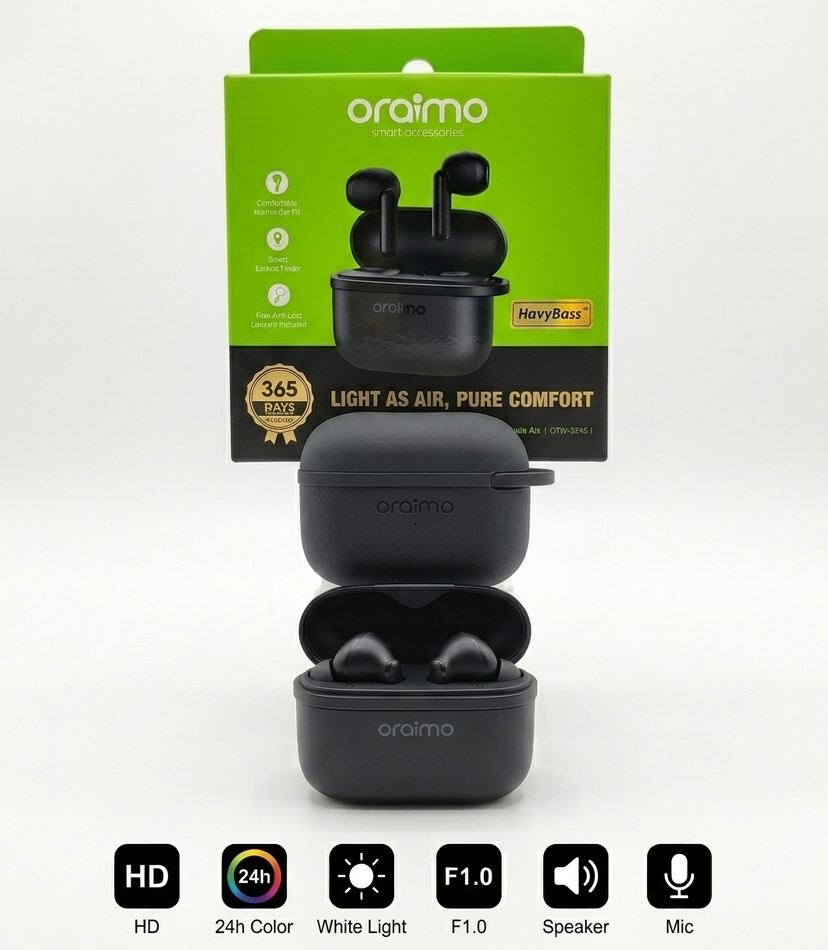 إذا كنت تبحث عن ايربودز تجمع بين الأناقة، الصوت القوي، والبطارية التي لا تنفد، وبأقل تكلفة ممكنة، فإن oraimo SpaceBuds Air هي اختيارك المثالي. صُممت هذه الايربودز لتمنحك راحة تامة طوال اليوم مع جودة صوت استثنائية تجعلك في قلب الحدث، سواء كنت تستمع للموسيقى أو تجري مكالماتك المهمة.