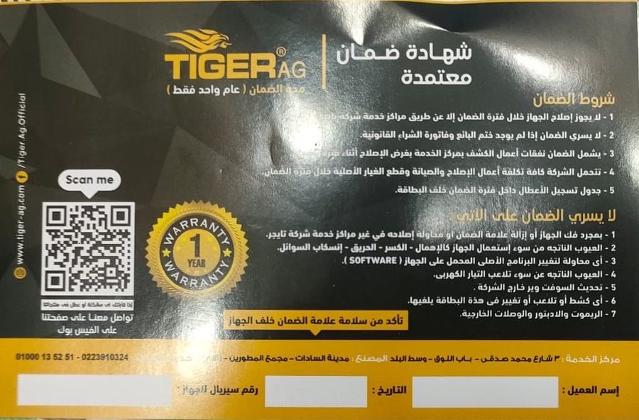 🛡️ ضمان معتمد سنة من شركة تايجر