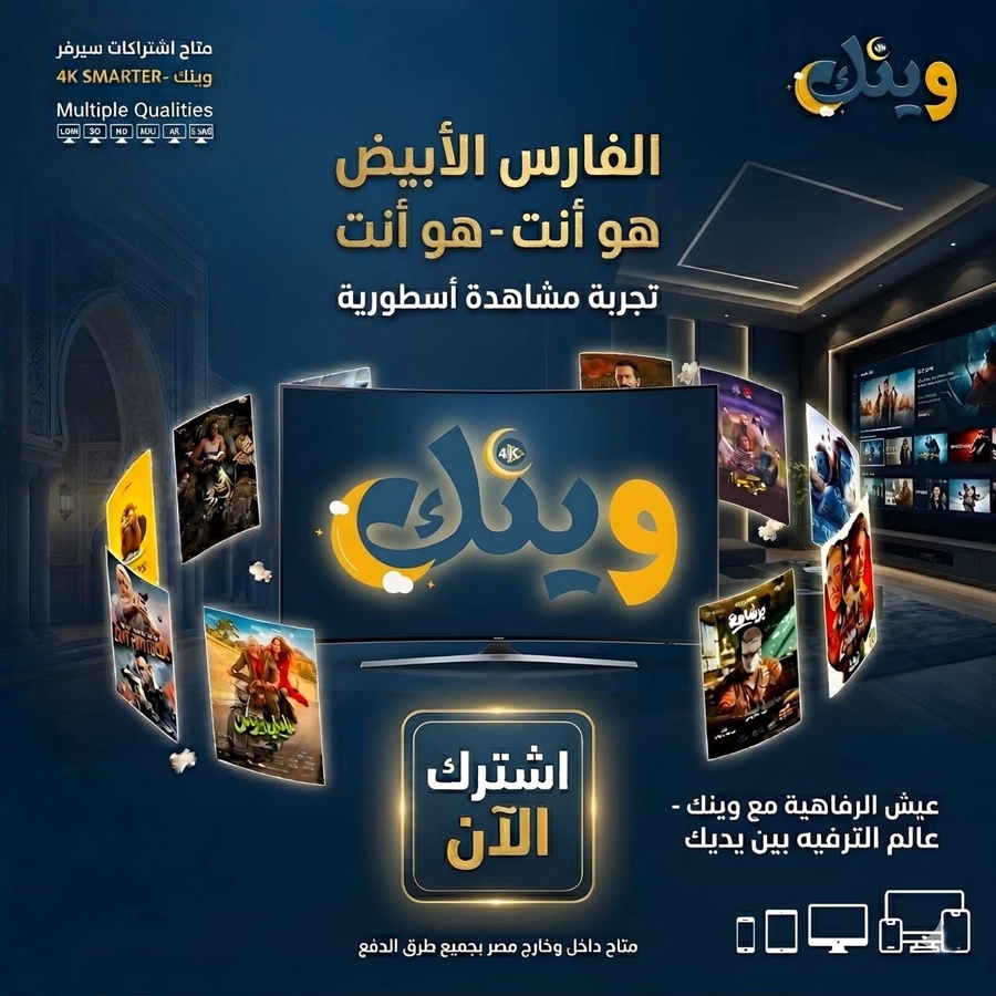 ⚙️ الأجهزة المدعومة: وينك معاك في كل مكان: (رسيفر - شاشات Smart & Android - موبايل آيفون وأندرويد - TV Box - كمبيوتر ولاب توب).