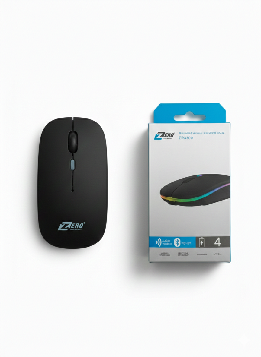 ماوس Zero ZR3300، امتلك القوة والسرعة في تصميم واحد فخم. الماوس الذي يجمع بين الاتصال اللاسلكي السريع وتقنية البلوتوث ليعطيك مرونة كاملة في العمل على أكثر من جهاز.