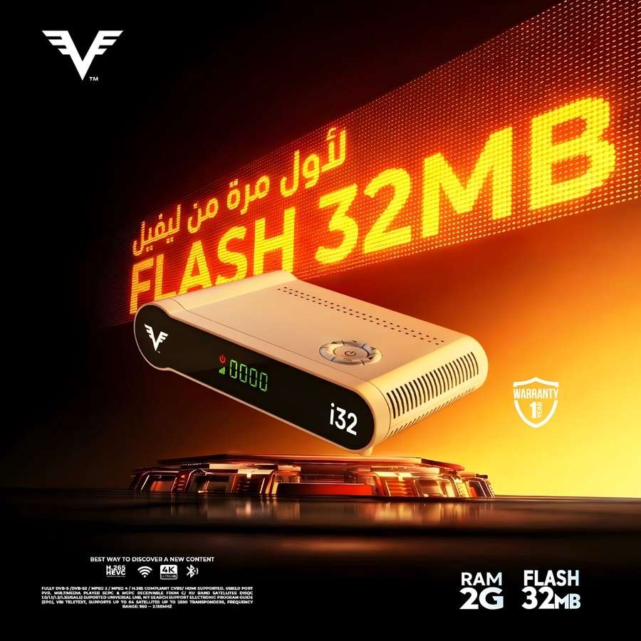 انسَ كل ما تعرفه عن أداء الرسيفرات سابقاً، LEVEL i32 ليس مجرد تحديث، بل هو ثورة تقنية! الجهاز الأول والوحيد الذي يأتي بذاكرة فلاش 32 ميجا، مما يعني استقراراً خرافياً، وسرعة في استجابة الأوامر لم تختبرها من قبل.